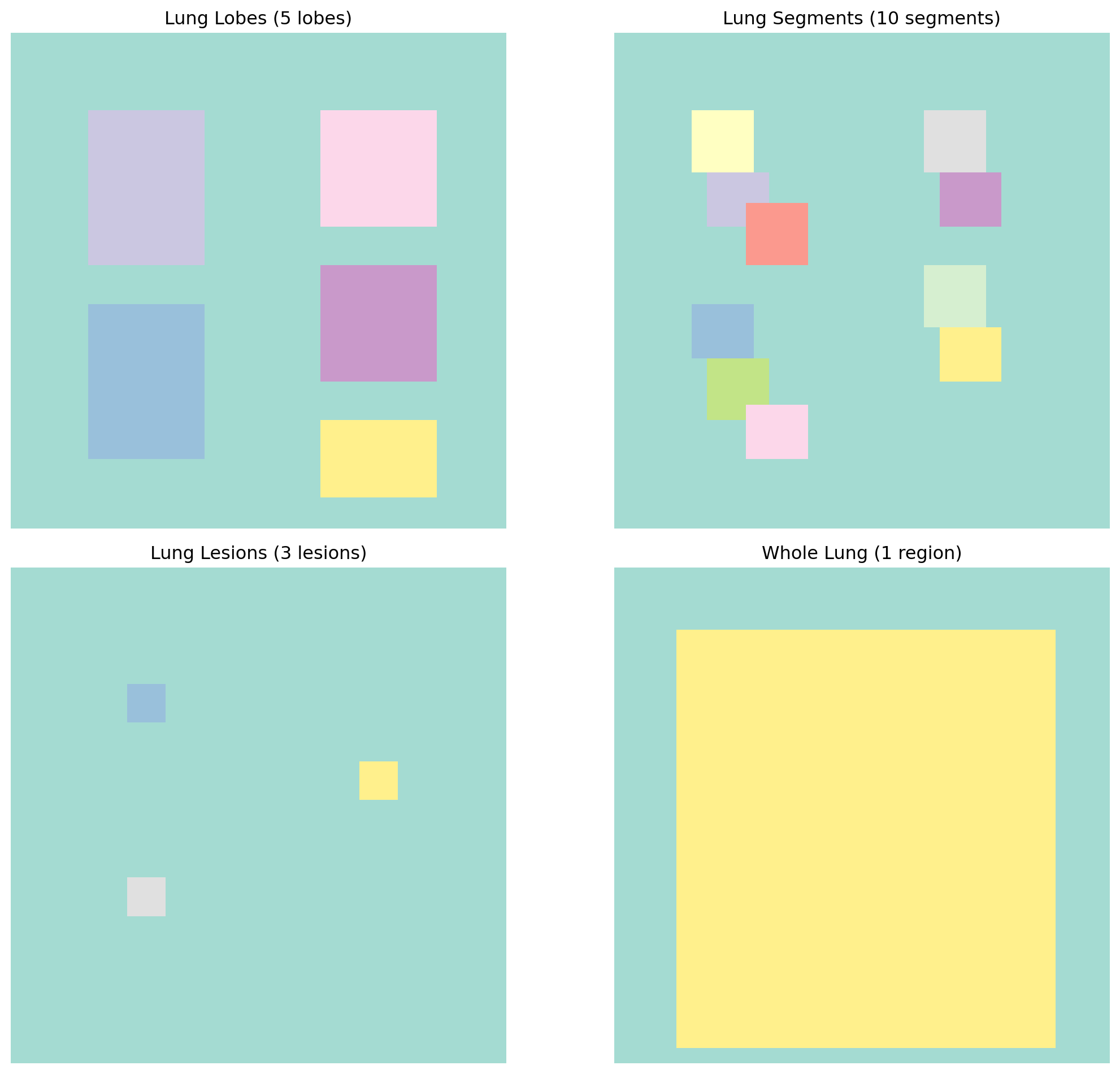 # 构建病灶掩膜 (3个病灶,可与肺叶重叠)